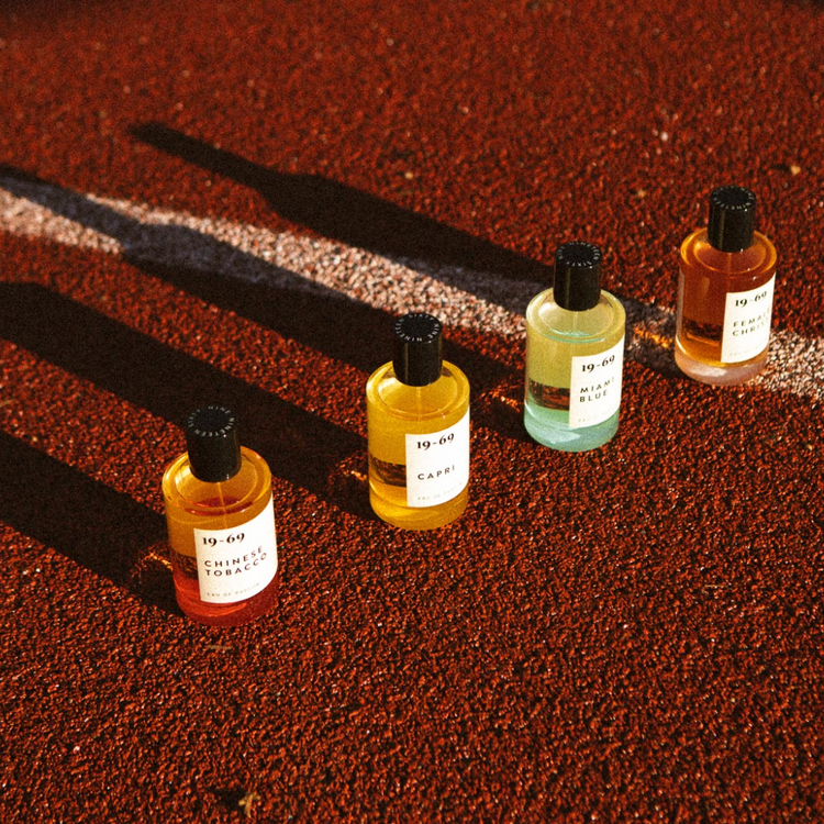 Each 19-69 scent is inspired by a different era, culture or setting from Africa, Europe, the States and Asia. Art, music, trends and cultures have all left their marks on the fragrances both in content, name and packaging. All fragrances are suitable for any gender. The glass bottles are varnished and screen printed in Italy.