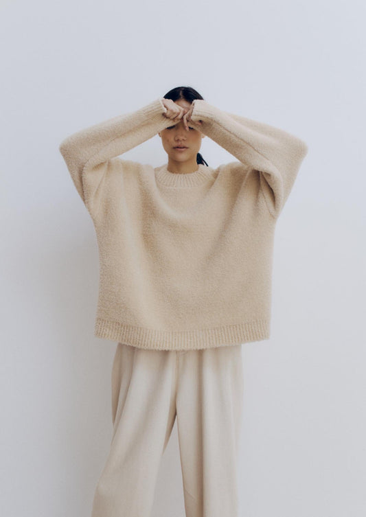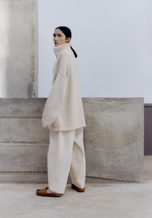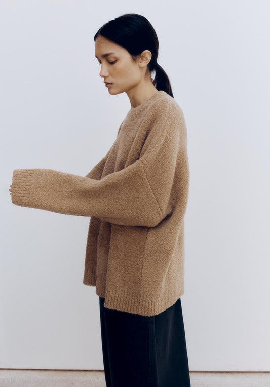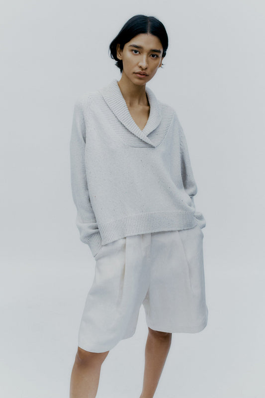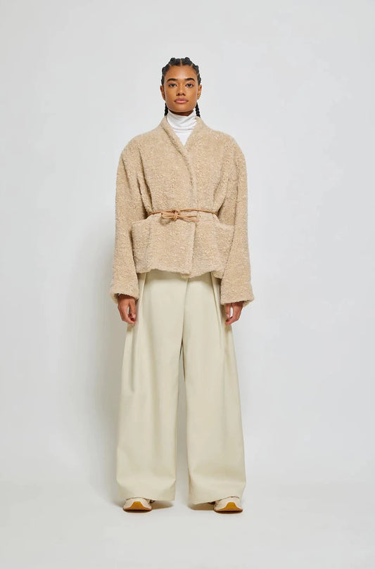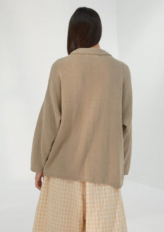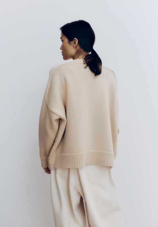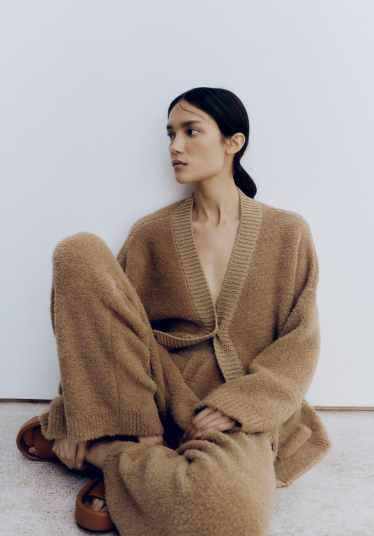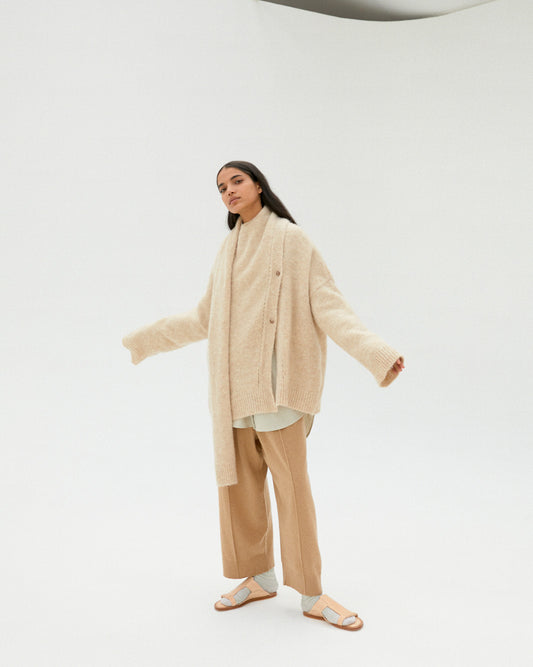 Sold outAlpaca Scarf-Neck Cardigan Beige