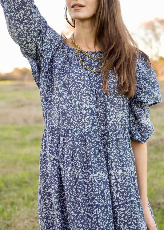 Jocelyn Dress, Cornflower Blossom Fil Coupe