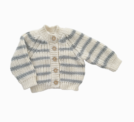 Rib Knit Stripe Cardigan, Bowie Grey