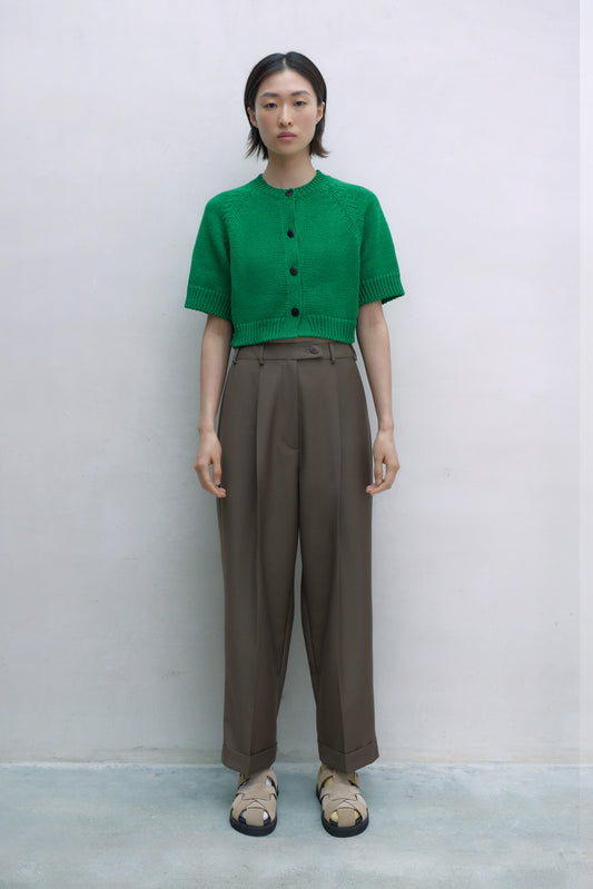 Baby Alpaca V-Neck Sweater, Pale Olive