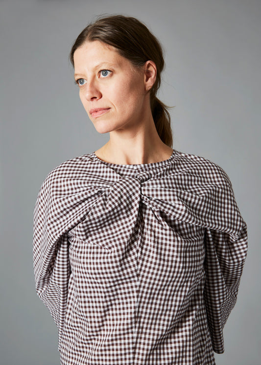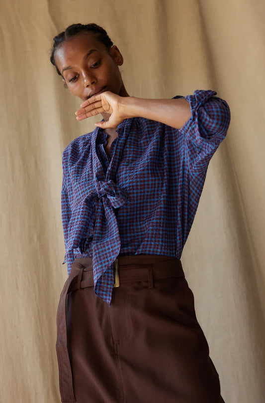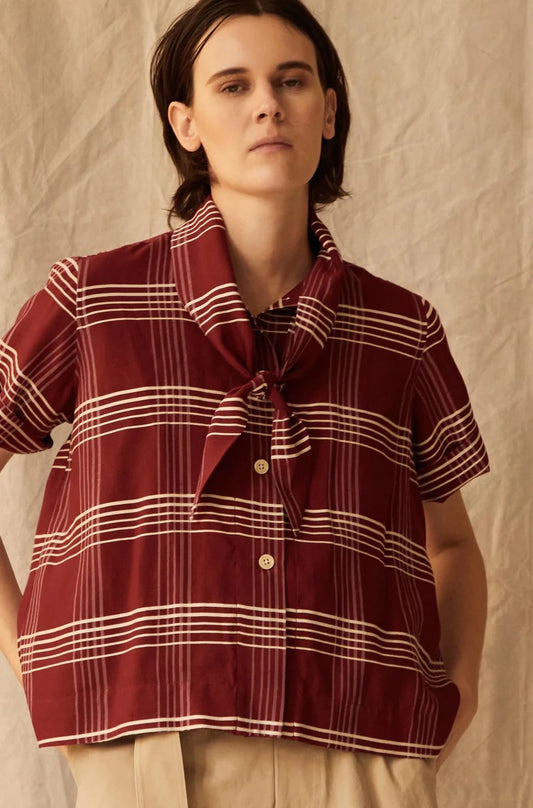 Chloe Bid Button Down, Ivory/Grey Plaid