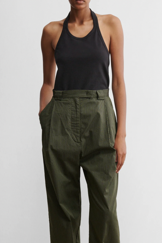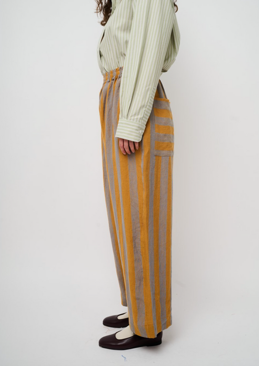 Linen Stripe Crop Racer Pant, Bell Pepper