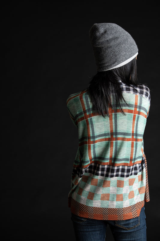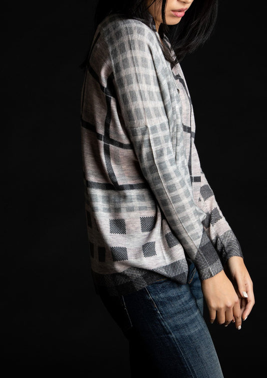 Sold outPrinted Plaid Cardigan, Grey Multi