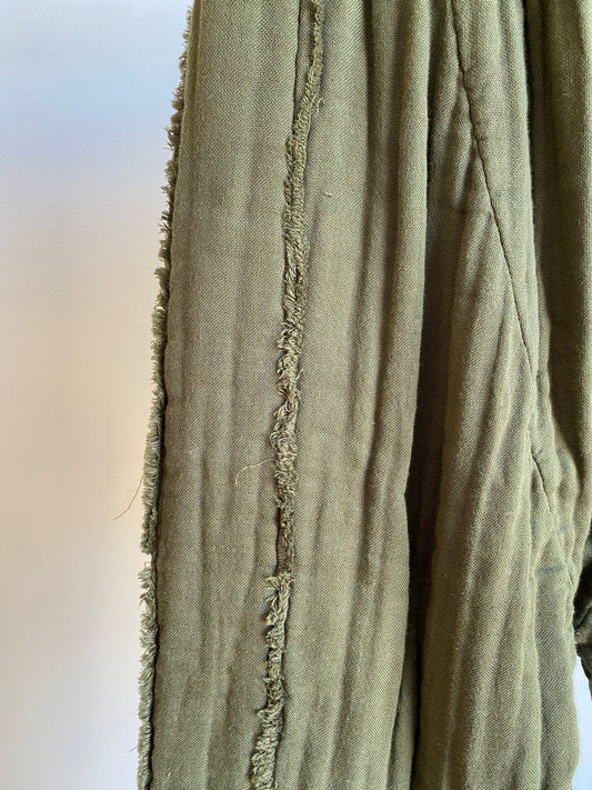 Sold outRaw Fringed Scarf, Light Grey Plaid