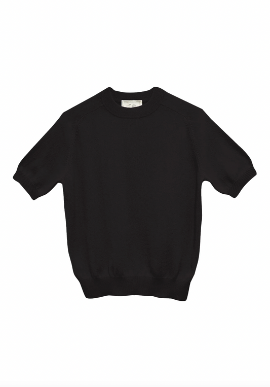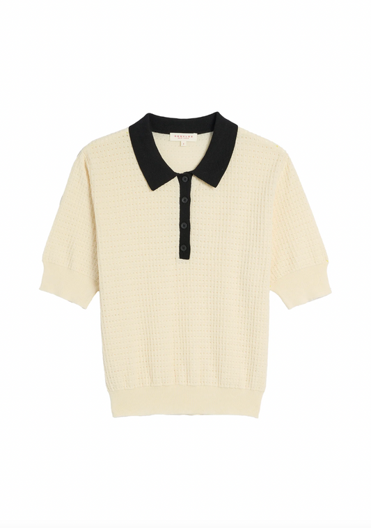 Celia Waffle Pointelle Cotton Polo Top, Ecru Black