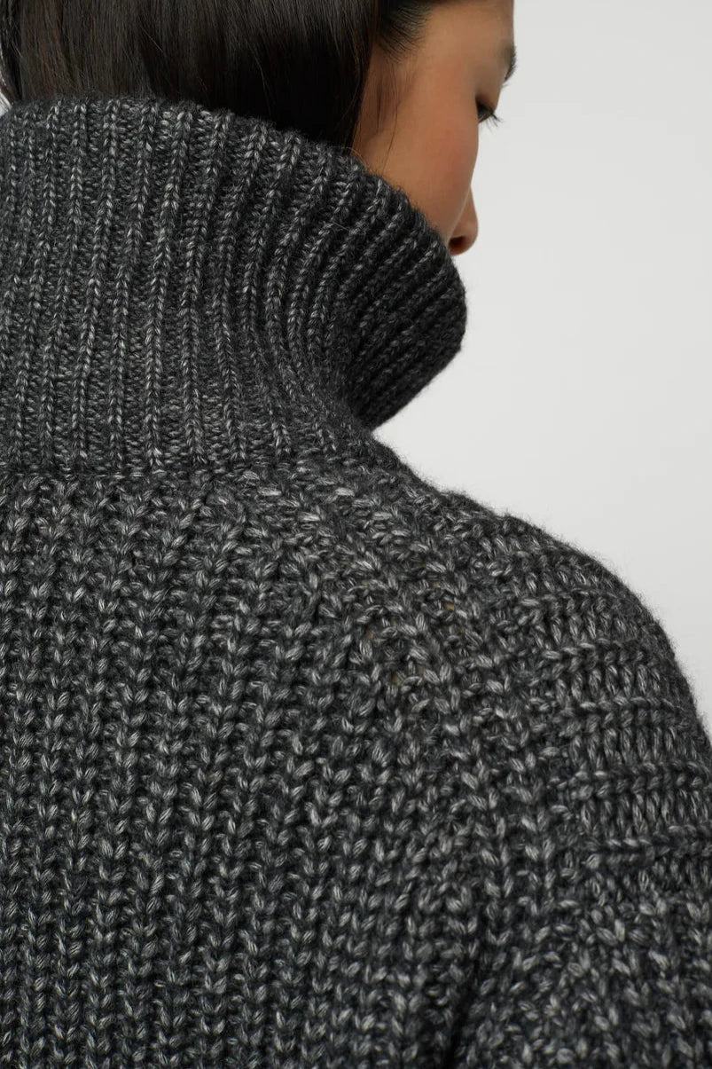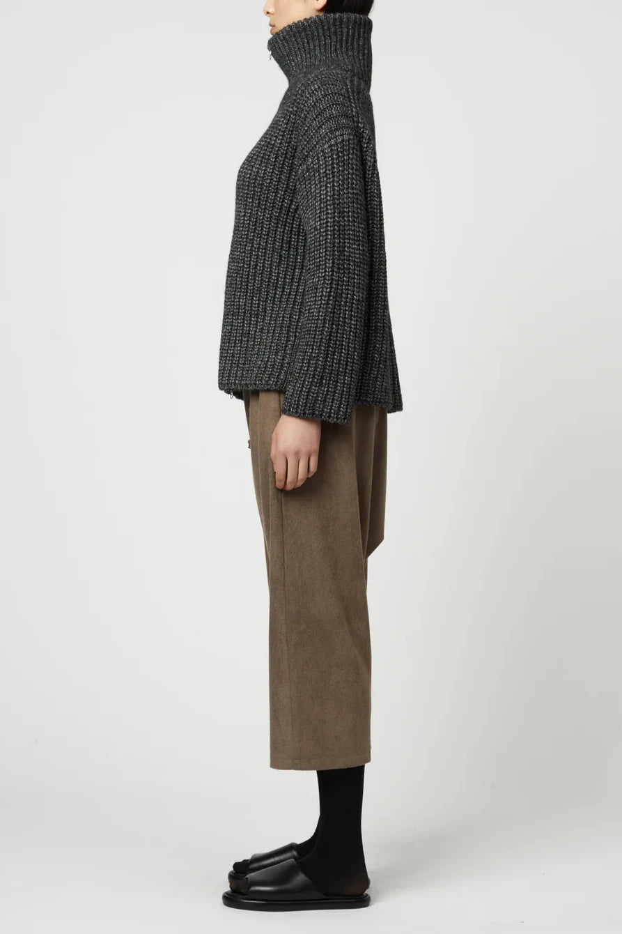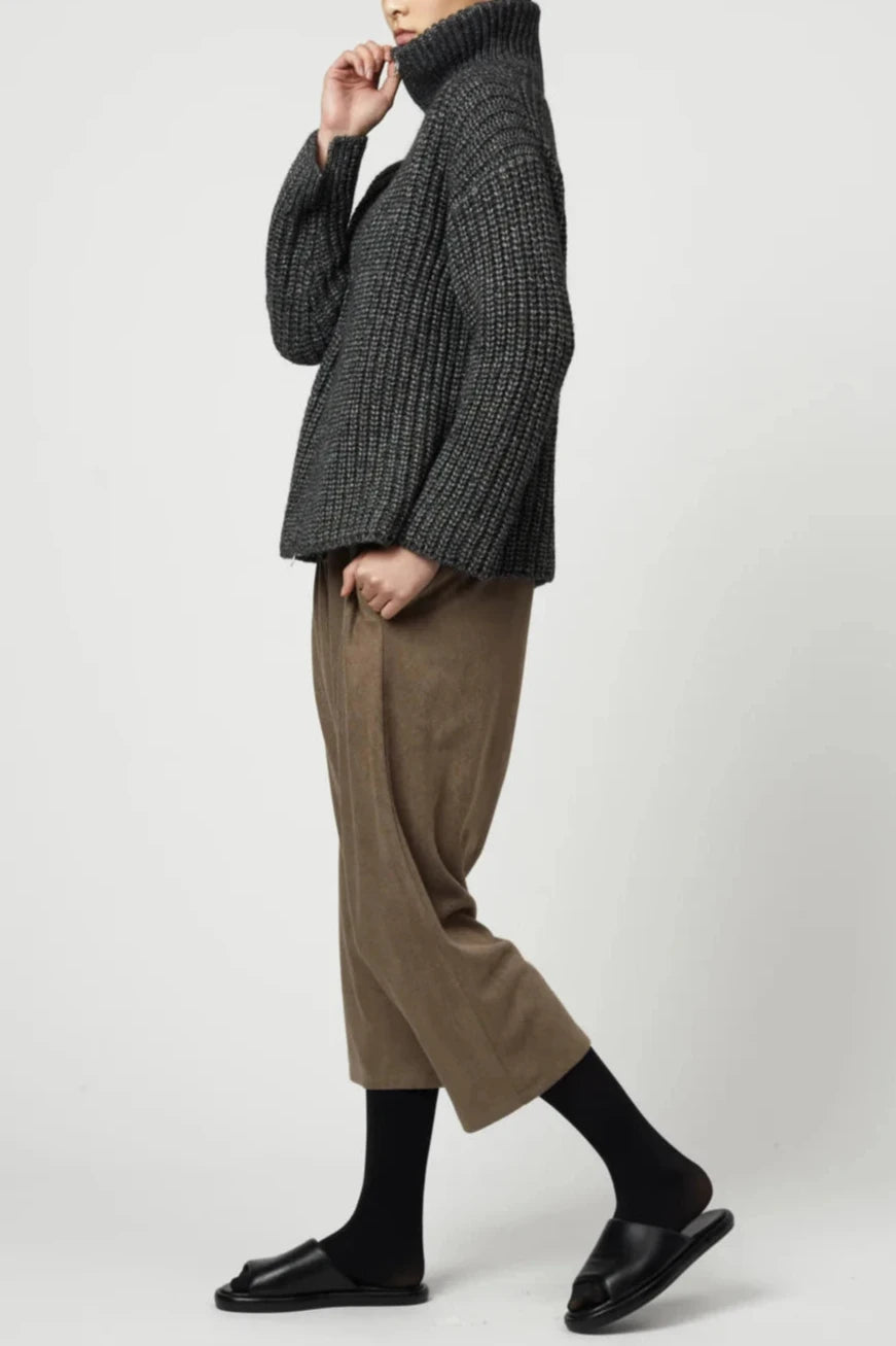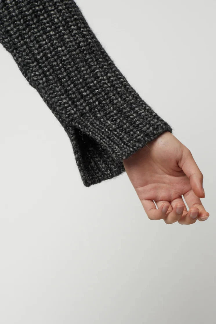 Chunky zip cardigan in our alpaca / pima cotton knit with a versatile two way zip for styling. Contrasting pima and alpaca yarns add breathability to the knit’s coziness as well as textural coloration.
