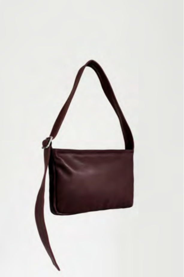 Baby version of our best selling Jane bag. A small, soft form shoulder bag with one adjustable flat shoulder strap. Featuring a minimal metal slider on the strap and one interior pocket. Unlined leather.