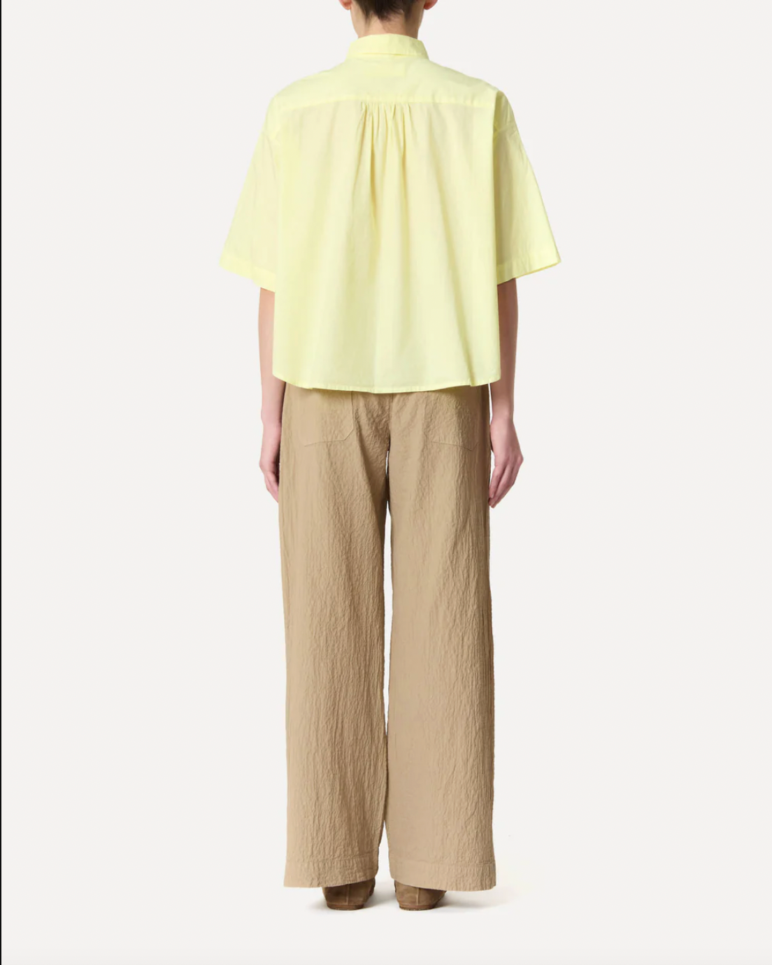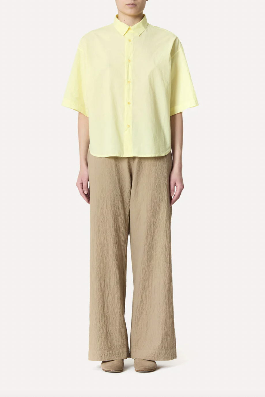 Slightly oversized short-sleeve shirt with wide sleeves, polo collar, and button placket in a dreamy light cotton poplin.