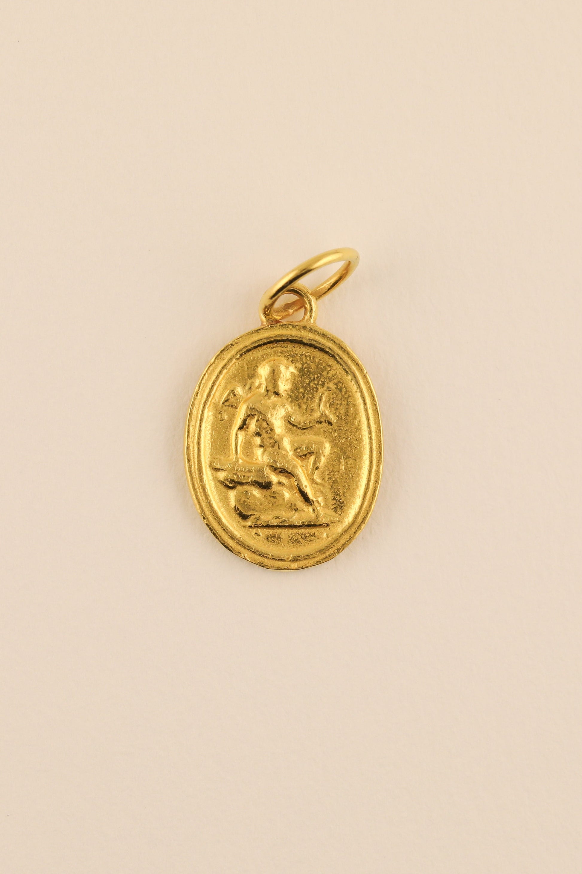 The Roman Cherub Pendant - named after the origin of the 18th century plaster intaglio the ring was cast from features a depiction of Eros or Cupid on the front. This piece is entirely handmade and crafted in Jake's NYC studio.