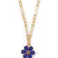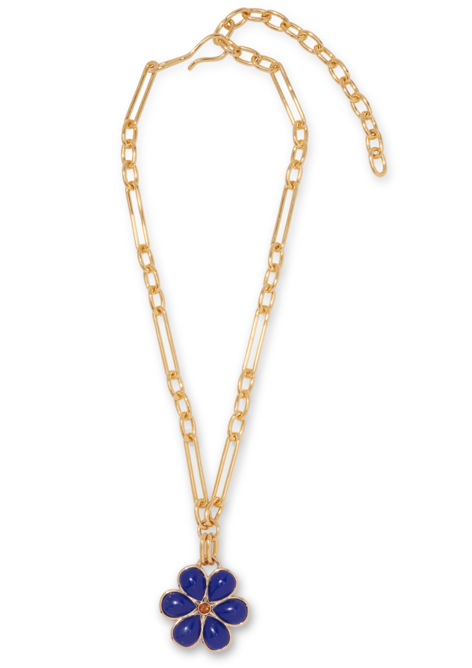 Gold-plated brass chain link necklace with 6-petal daisy pendant set with stones and a faceted Citrine semiprecious cabochon
