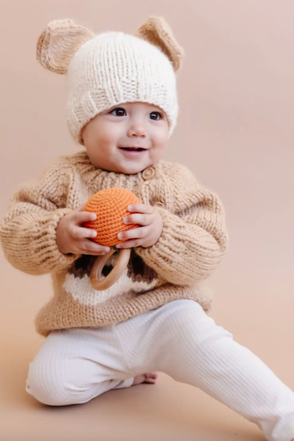 Keep your little pup's head cozy with our Dog Hat in Cream. This Cream beanie features the perfect little Latte-colored dog ears.
