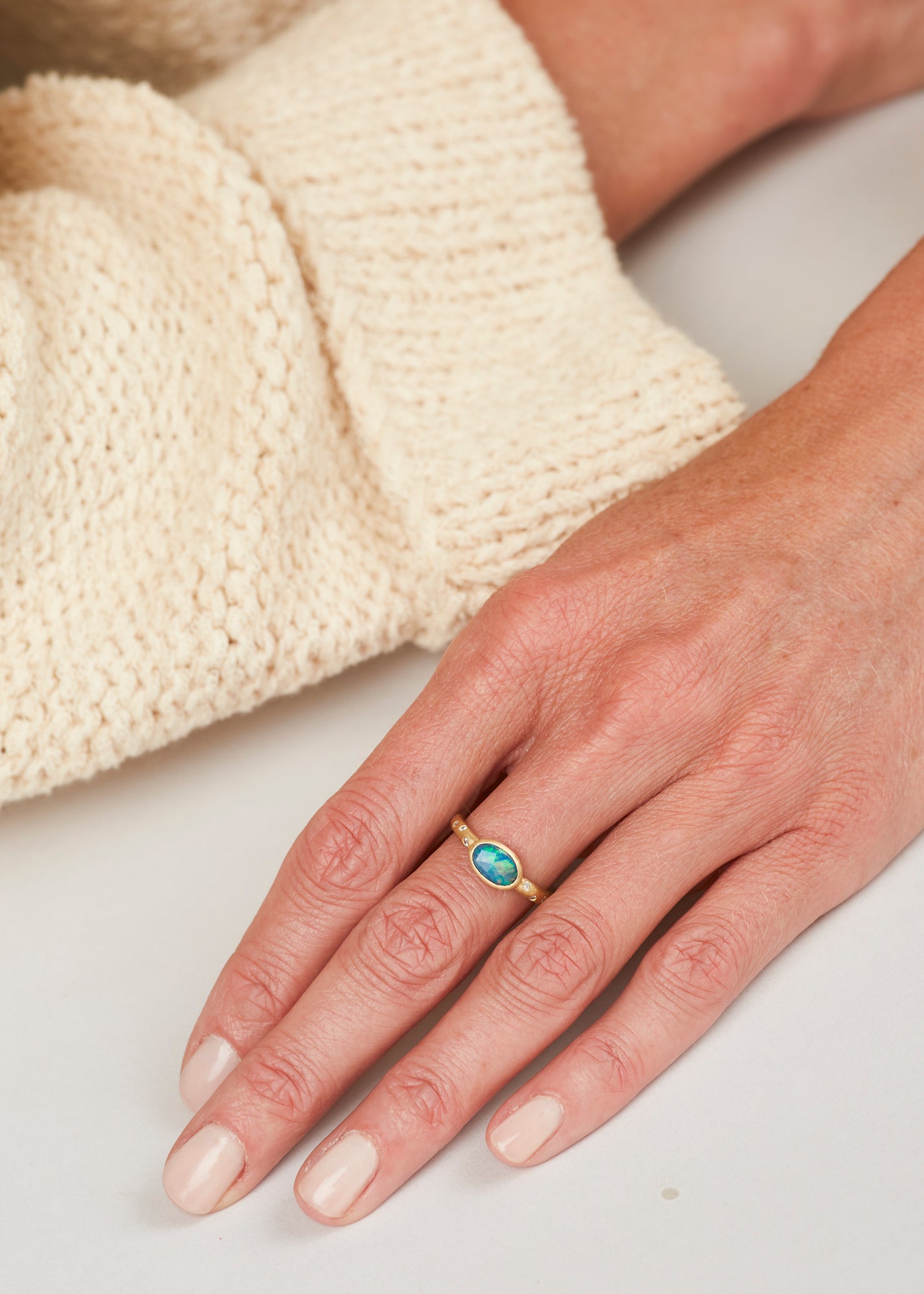 .5ct. faceted opal, .06 ct diamond, 18KYG