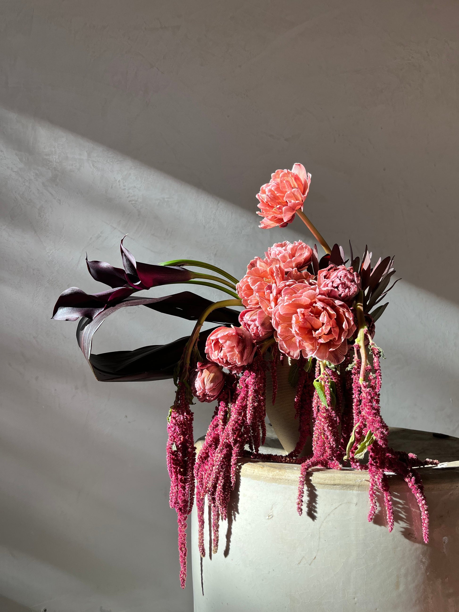 In this workshop you will choose from a selection of curated florals as you are guided through the color and style theory of a holiday arrangment. Each ticket includes a leather wrapped vase, a selection of premium flowers, and all arrangment materials. Wine and seasonal snacks will be served.