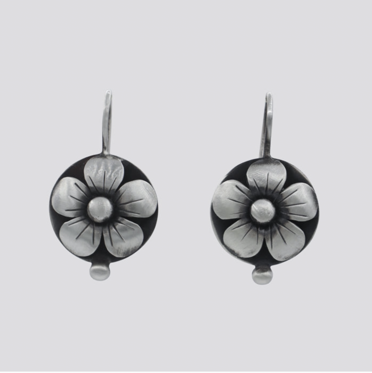 Etched sterling silver domed petals with solid ball earrings. Sweet!