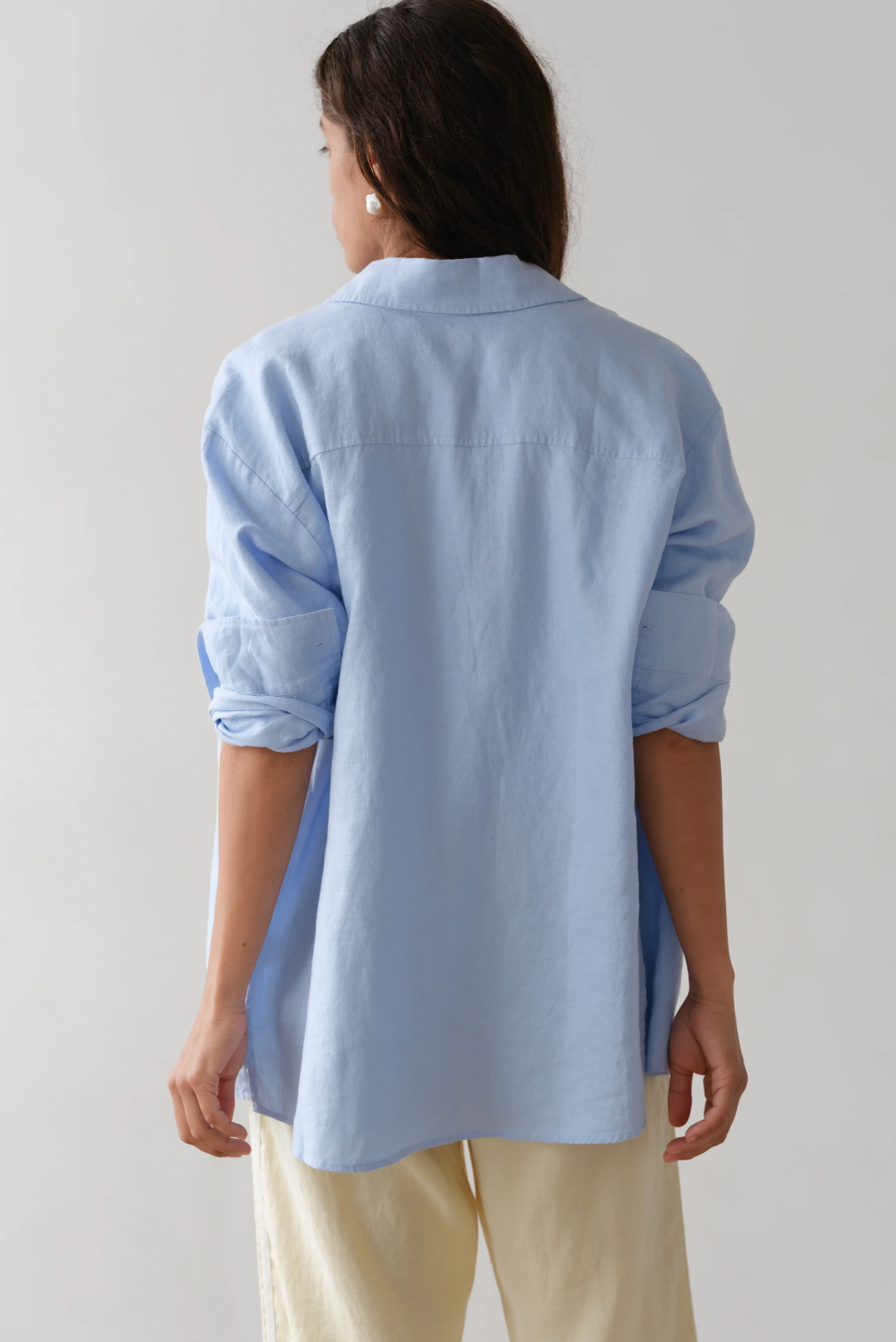 Please note: The color of this shirt is a deeper blue than pictured in the brand photography and is more accurately reflected in the editorial shot on Sophie!
