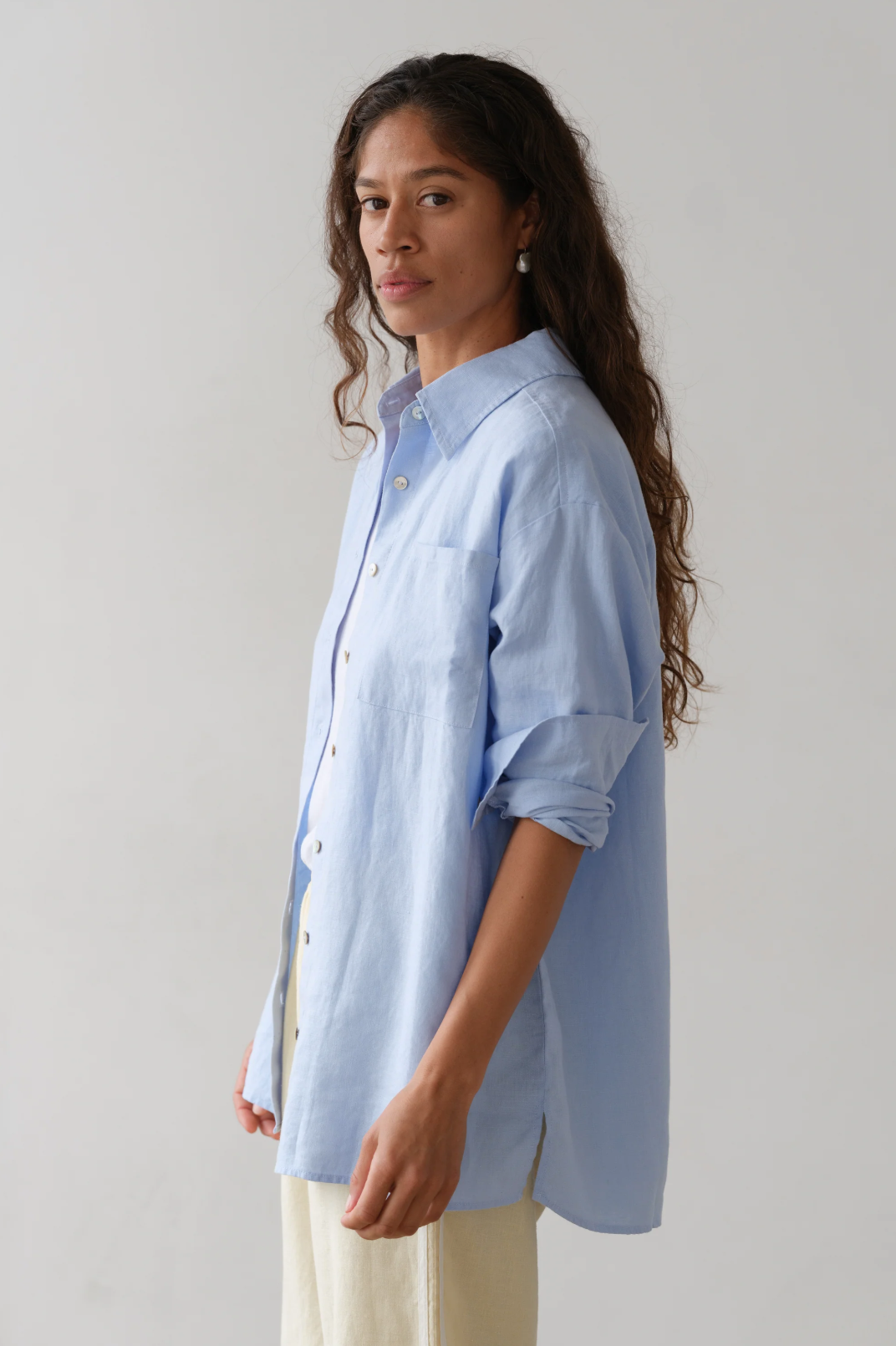 Crafted from our breathable, lightweight linen, this classic button-down features a relaxed fit, chest pocket, two-button cuffs, and mother of pearl buttons for a refined finish.