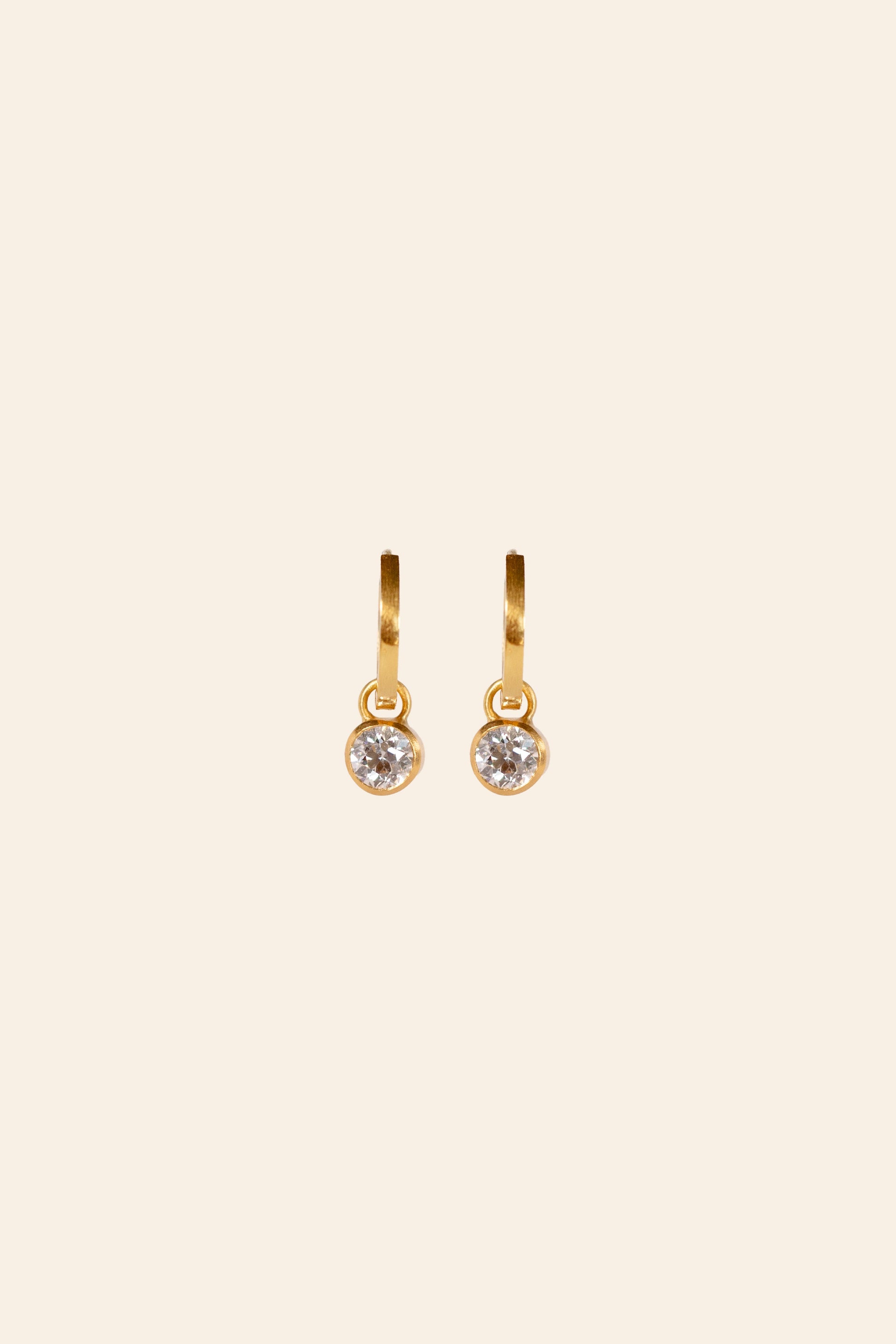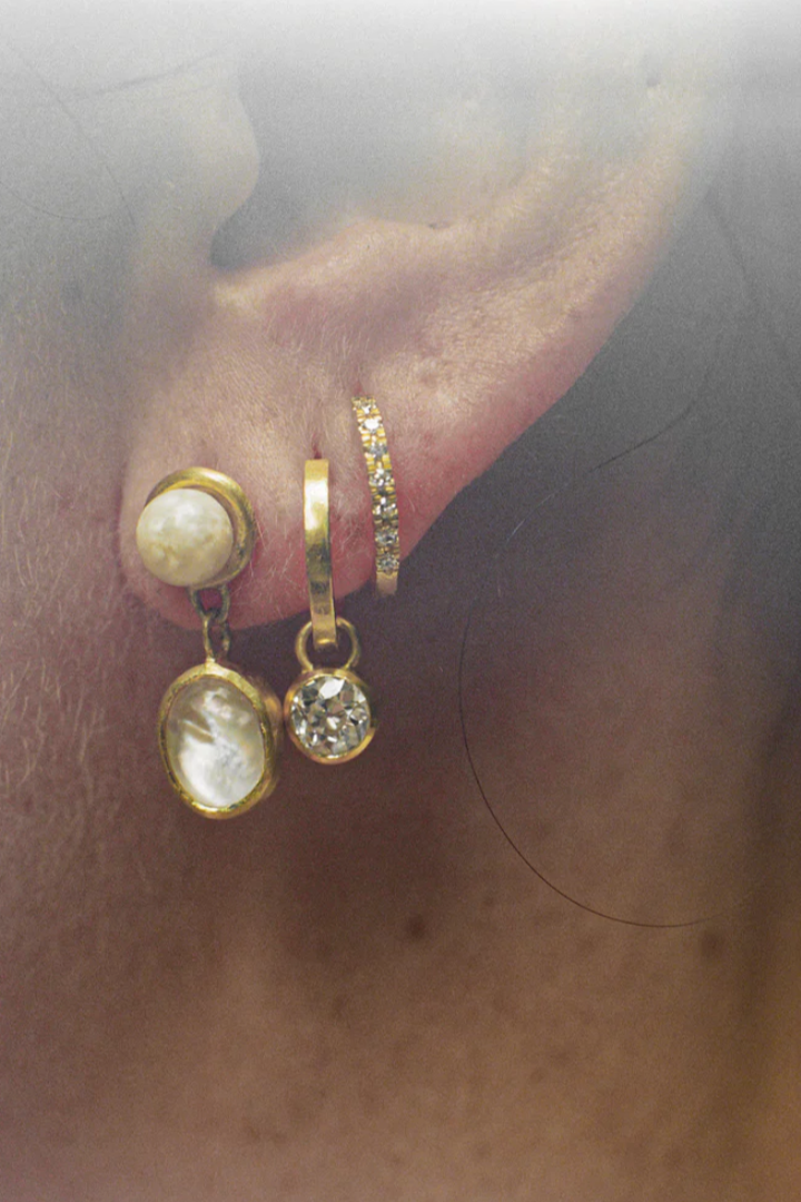 The Old Euro Huggie Hoop Drops features a stunning pair of natural old European cut diamonds wrapped in our signature 22k alloy. Every piece in the collection is entirely hand-fabricated by Jake in his New York City Studio.