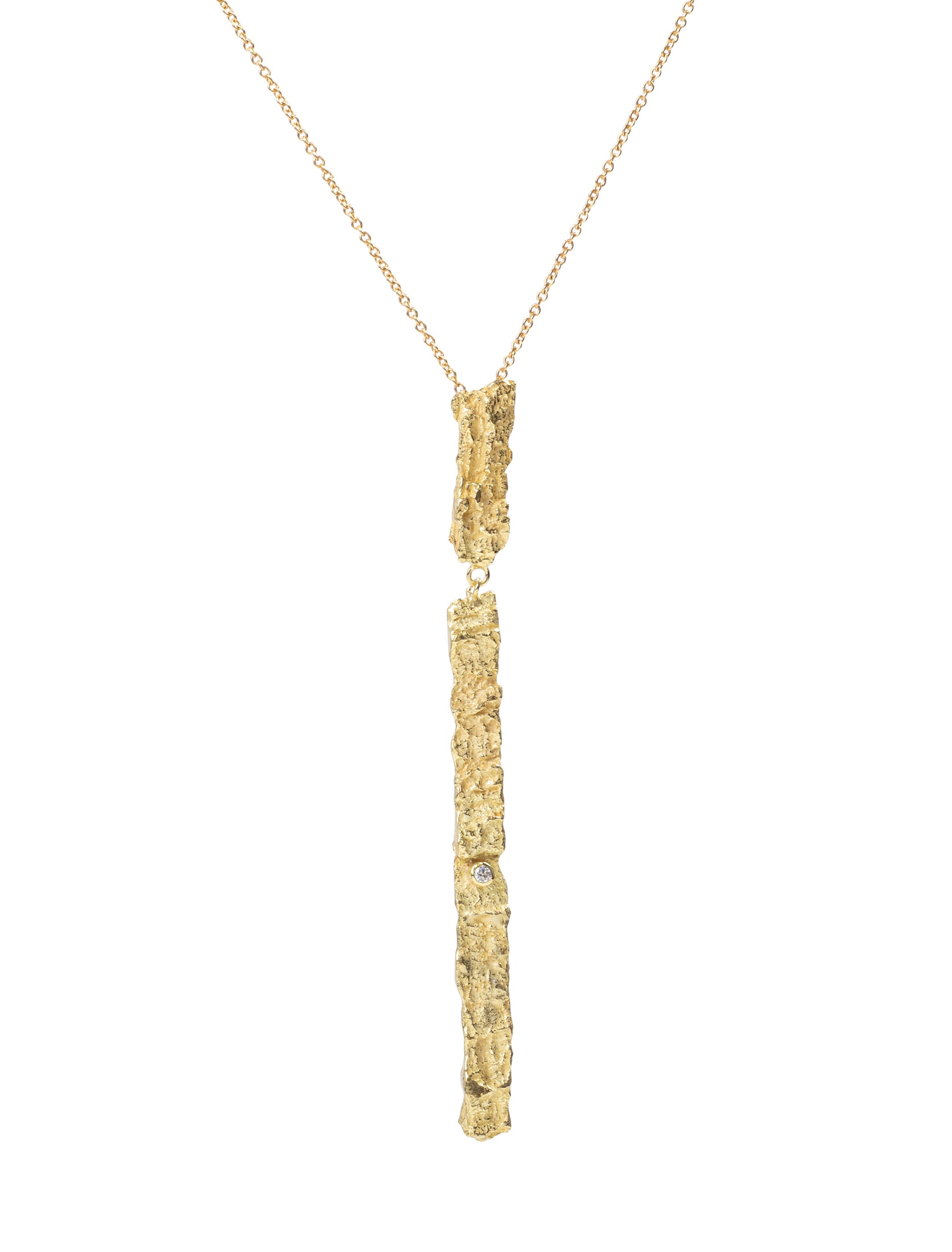 Emanuela Duca's Raw You Collection's pendant necklace. Adorned with a petite diamond, its long textured pendant exudes sophistication and allure. A symbol of individuality and femininity, this design speaks volumes with its understated charm.