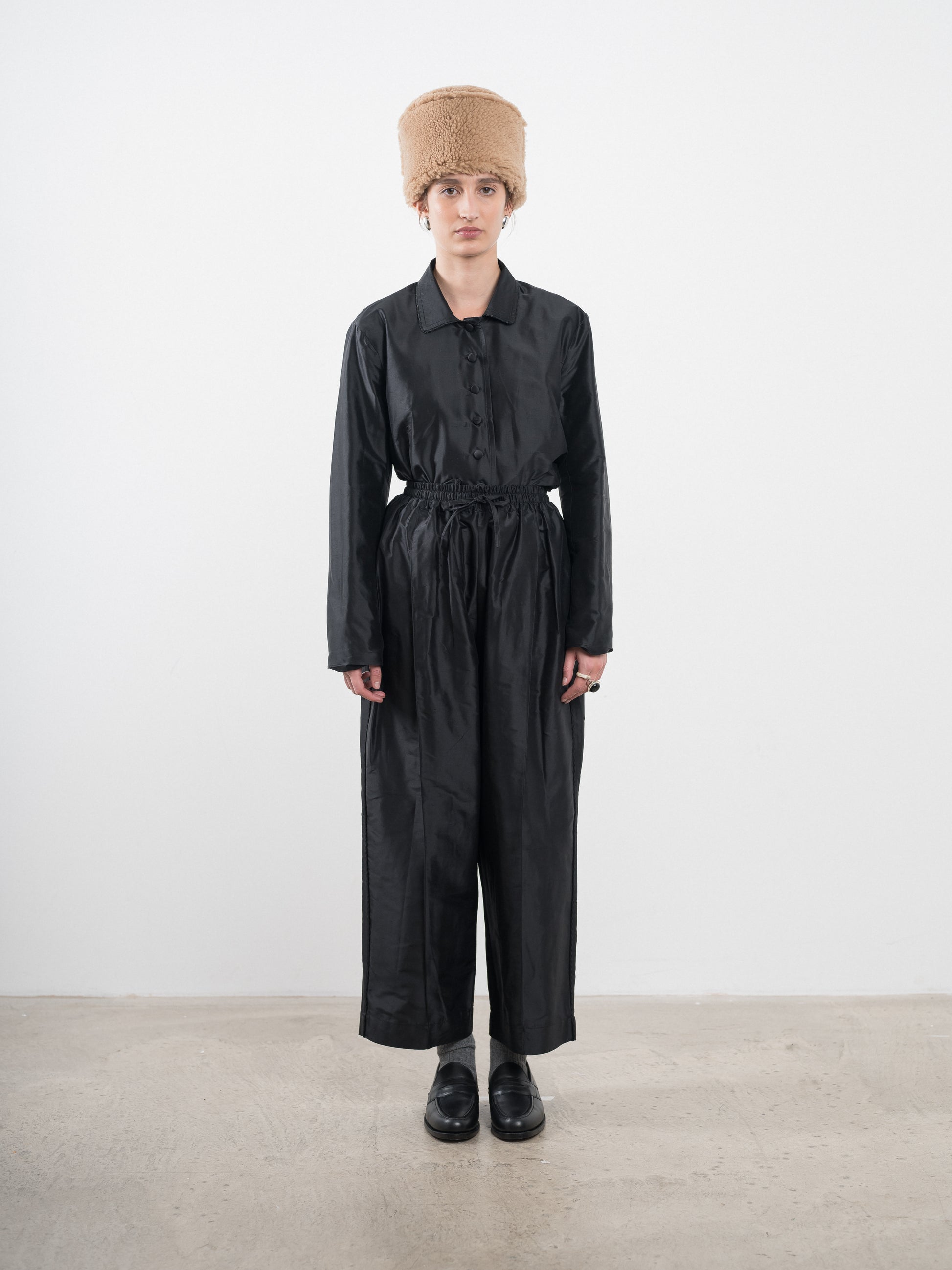 Designed for a generously relaxed fit, the Luna Trousers feature a loose silhouette. Crafted from 100% silk dupion, they are accented with matching embroidered trim along the side seams, large back patch pockets, and an elastic waistband with a drawstring for flexibility and comfort.