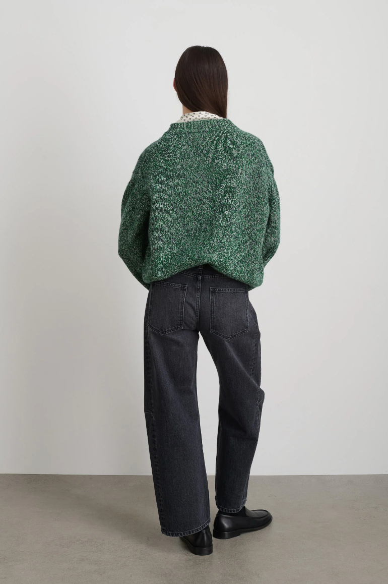 The Original Lasso Jean cut from heavy cotton rich denim, that has been washed way down to a matte black with a peached handfeel -then finished for a relaxed structured look. Designed to sit at the natural waist with a pieced outseam, kinked leg shape and finished hem.