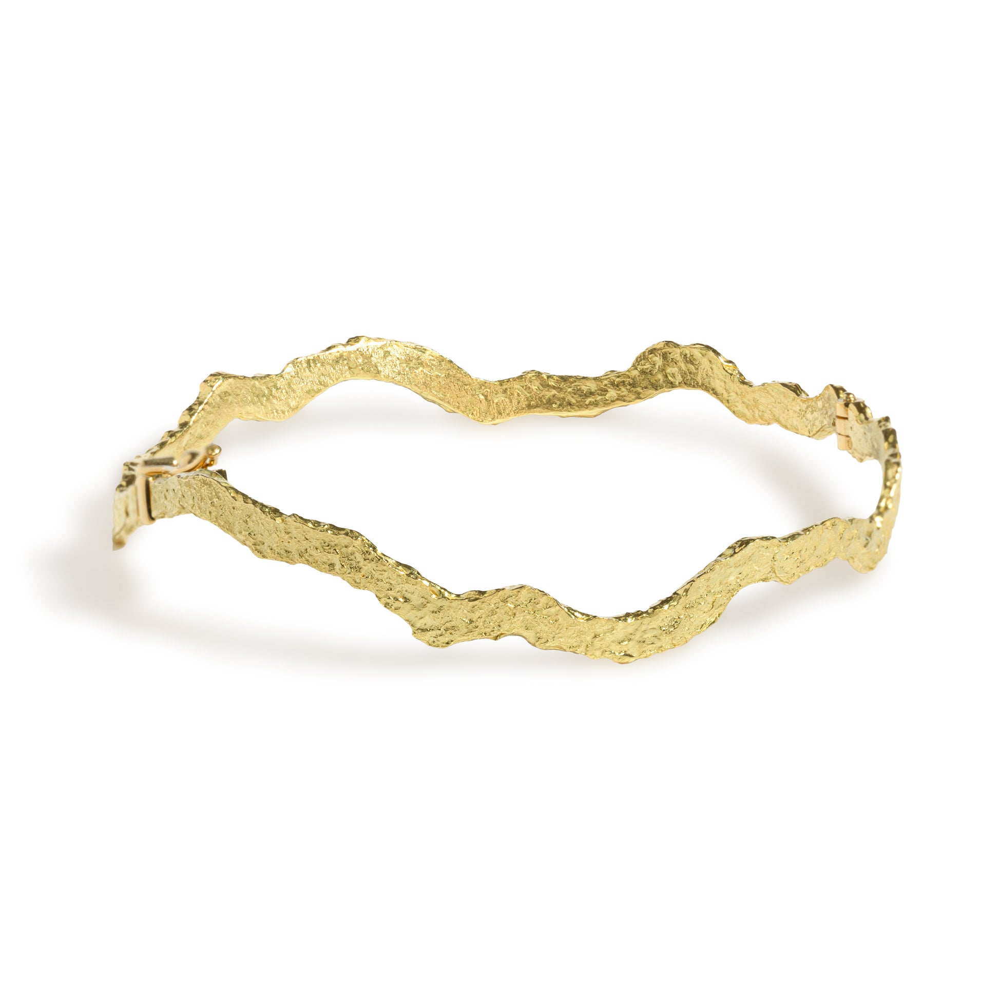 Emanuela Duca’s 18K gold bangle embodies her signature sculptural style—organic, textured, and quietly powerful. Handcrafted in Italy, the piece reflects her distinctive approach to form and finish, where bold simplicity meets artisanal detail. Made in her signature warm gold, this timeless bangle carries both the spirit of ancient Rome and the modern edge of contemporary design.