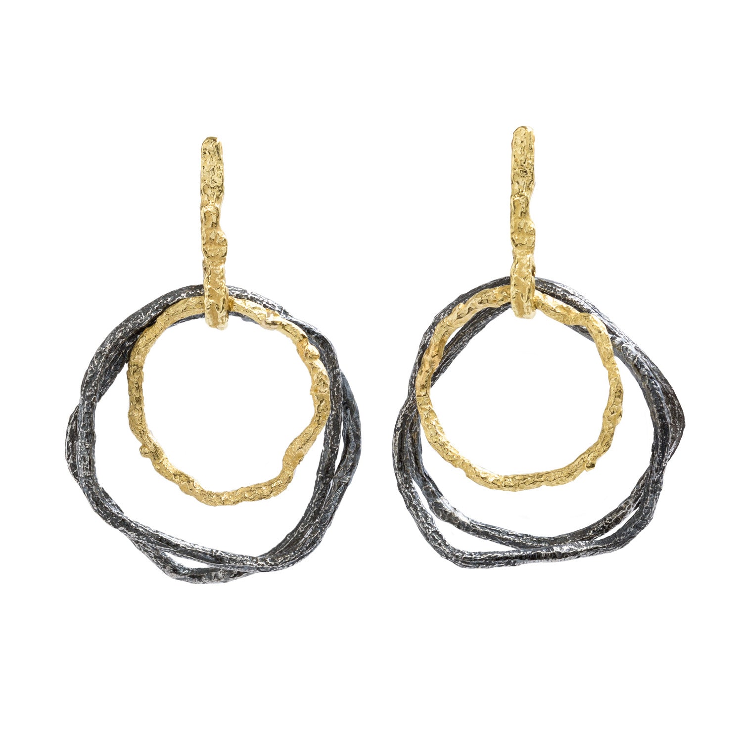 Handcrafted in Italy from 18K gold and blackened sterling silver, these earrings embody a striking contrast of elegance and edge, showcasing the designer’s signature sculptural style.